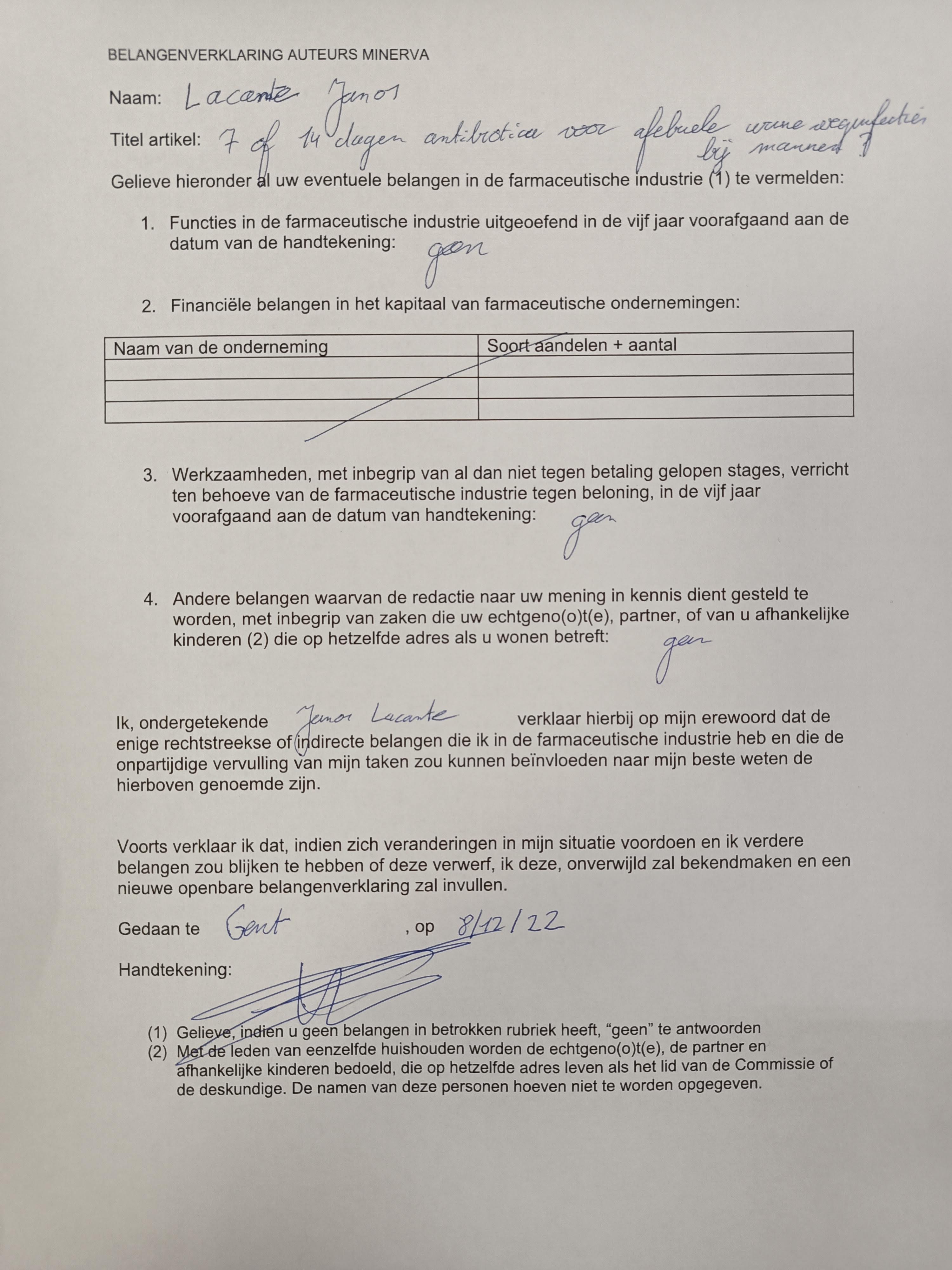 Apotheker, HuisartsCiteer dit als : Lacante J. - 7 of 14 dagen antibiotica voor afebriele urineweginfecties bij mannen? Minerva Artikel 2022;21(10):246-249.