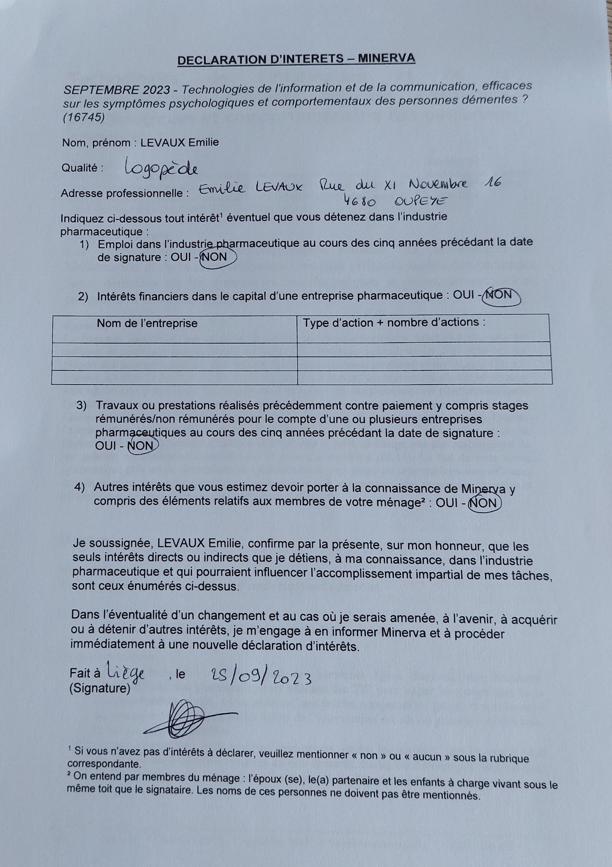 Ergotherapeut, Huisarts, Logopedist, Psycholoog, VerpleegkundigeCiteer dit als : Levaux E. - Hebben informatie- en communicatietechnologieën een doeltreffend effect op de psychologische en gedragssymptomen bij dementerende personen? Minerva Artikel 2023;22(7):165-167.