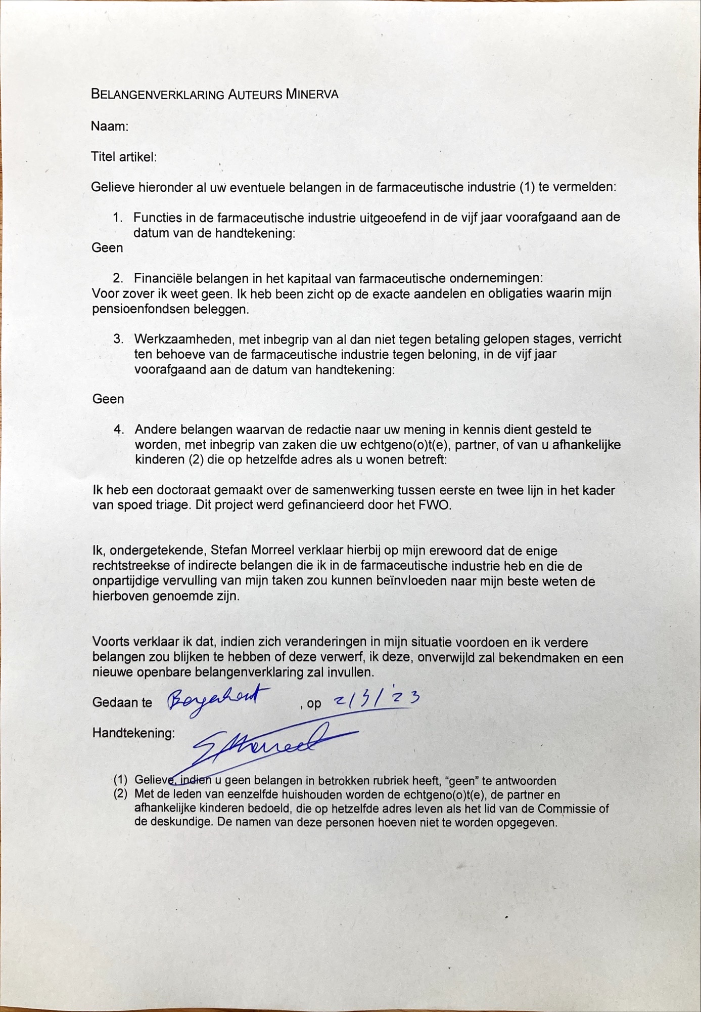 Infirmier, Médecin généralisteCitez ceci comme : Morreel S. - Au service des urgences, la durée de procédure pourrait-elle être améliorée grâce au recours à des prestataires de soins de première ligne pour le triage ? Minerva Article 2023;22(2):28-31.